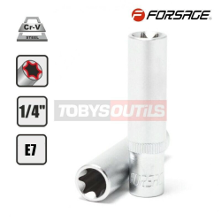 Douille longue E7 TORX femelle 1/4" Chrome-Vanadium L50 mm E-7 FORSAGE F-5265007