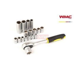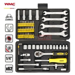 Coffret cliquet douilles 1/4" 6pans 4 à 14mm embouts et clés à fourche WMC 2062