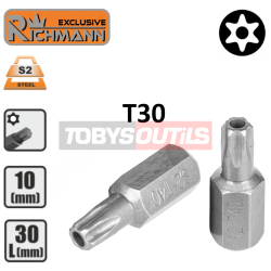 Embout T30 AVEC TROU T-30H TORX securité percé entrainement 10 mm 3/8" Acier S2