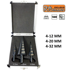 Coffret de 3 forets à étages HSS professionnel 4-32 mm RICHMANN C9265